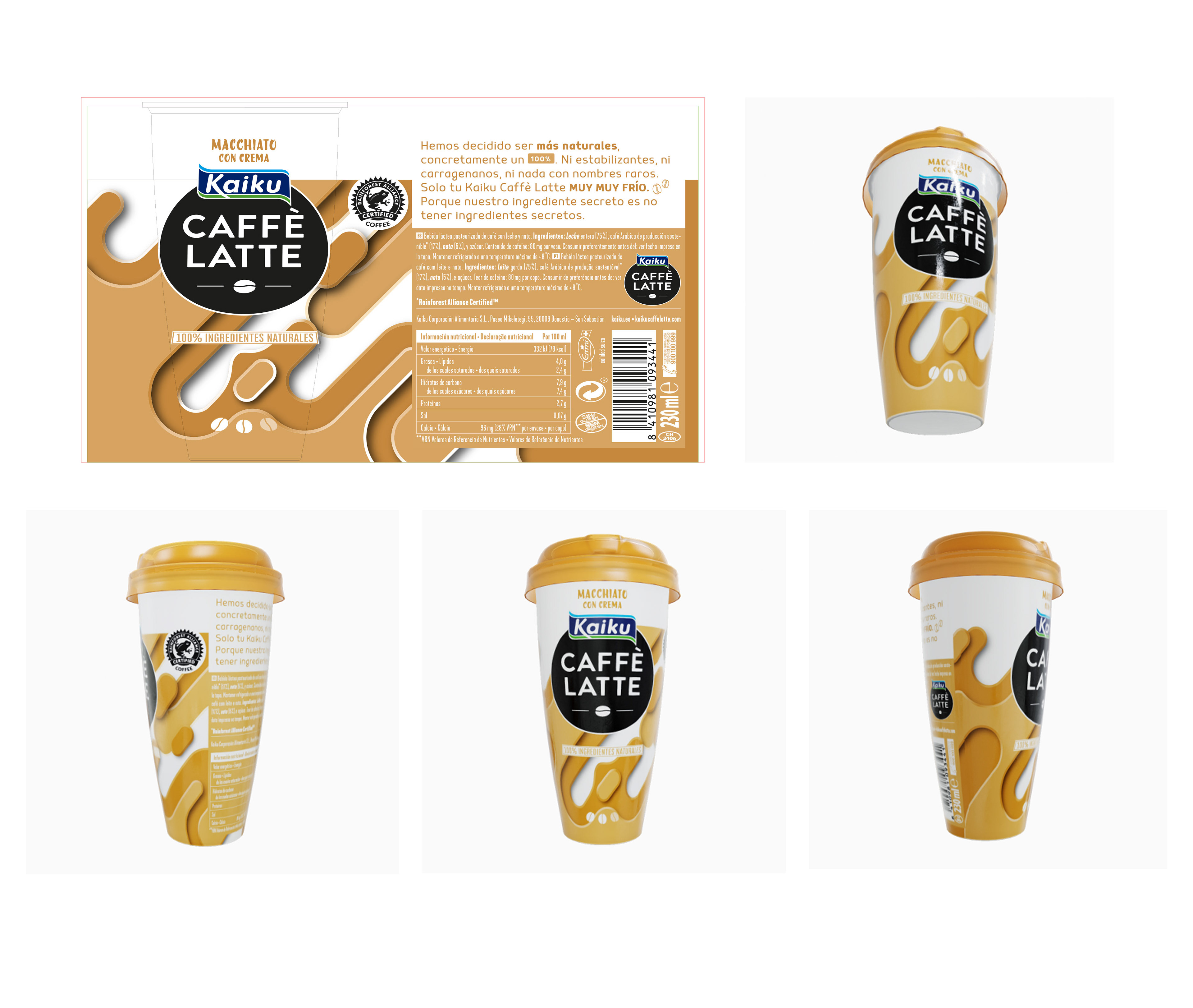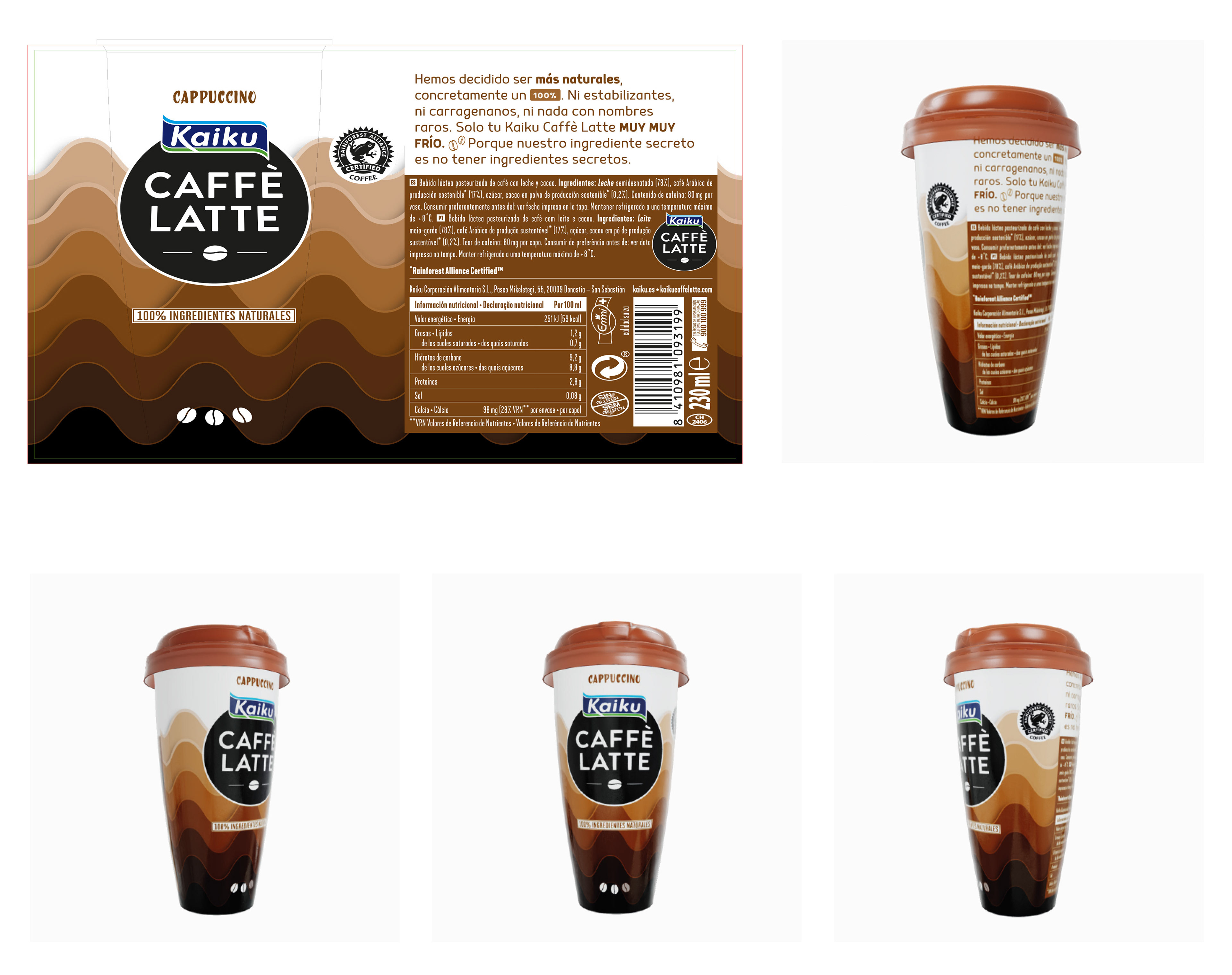 Propuesta para concurso packaing de Kaiku Caffè LAtte. Finalmente no fué seleccionada. 2020 Cliente: Kaiku.